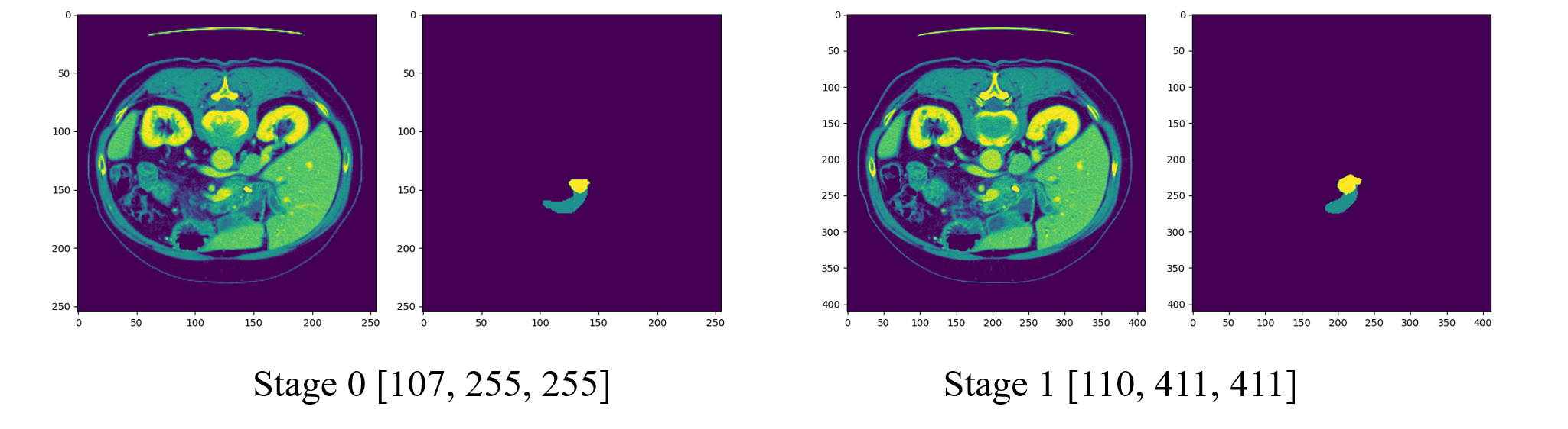 第一阶段unet是小图像 [107, 225, 225],第二阶段是全图像 [110, 411, 411]。